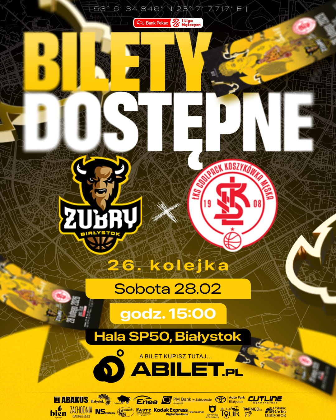 W sobotę 28 lutego rozegramy mecz 26. kolejki Pekao S.A. 1 Liga Mężczyzn, w którym zmierzymy się z ŁKS Coolpack Szkoła Gortata 🏀